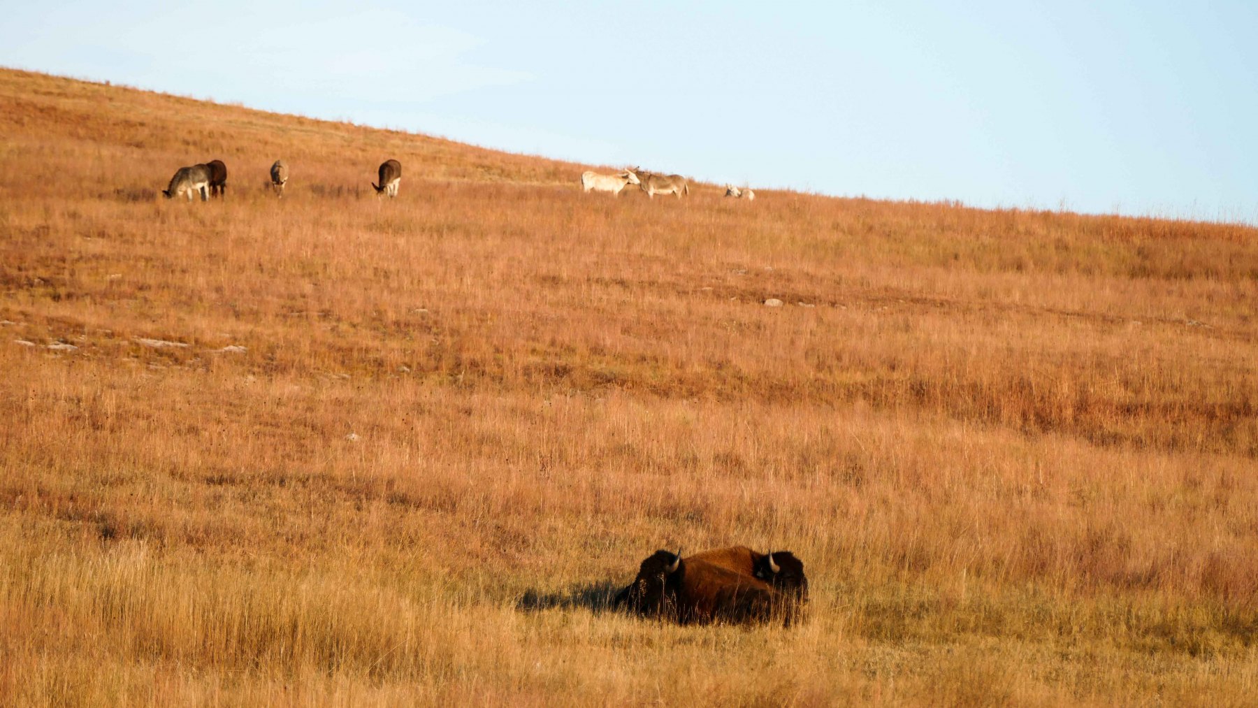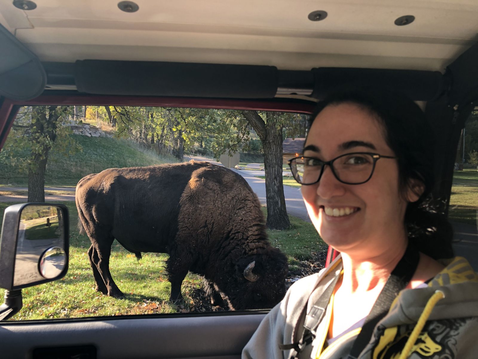 Since we bookended our trip with two full weekends of driving, weekday mornings were the best time to sightsee. A neighboring RVer back in Montana had told us about Custer State Park which has a scenic drive called the Wildlife Loop Road full of bison and other plains fauna. The animals are most active early and late in the day, so we got up to see them at sunrise before work. The only animal we saw but couldn’t snag a snap of was the coyote loitering around Prairie Dog Town; he was indeed wily.