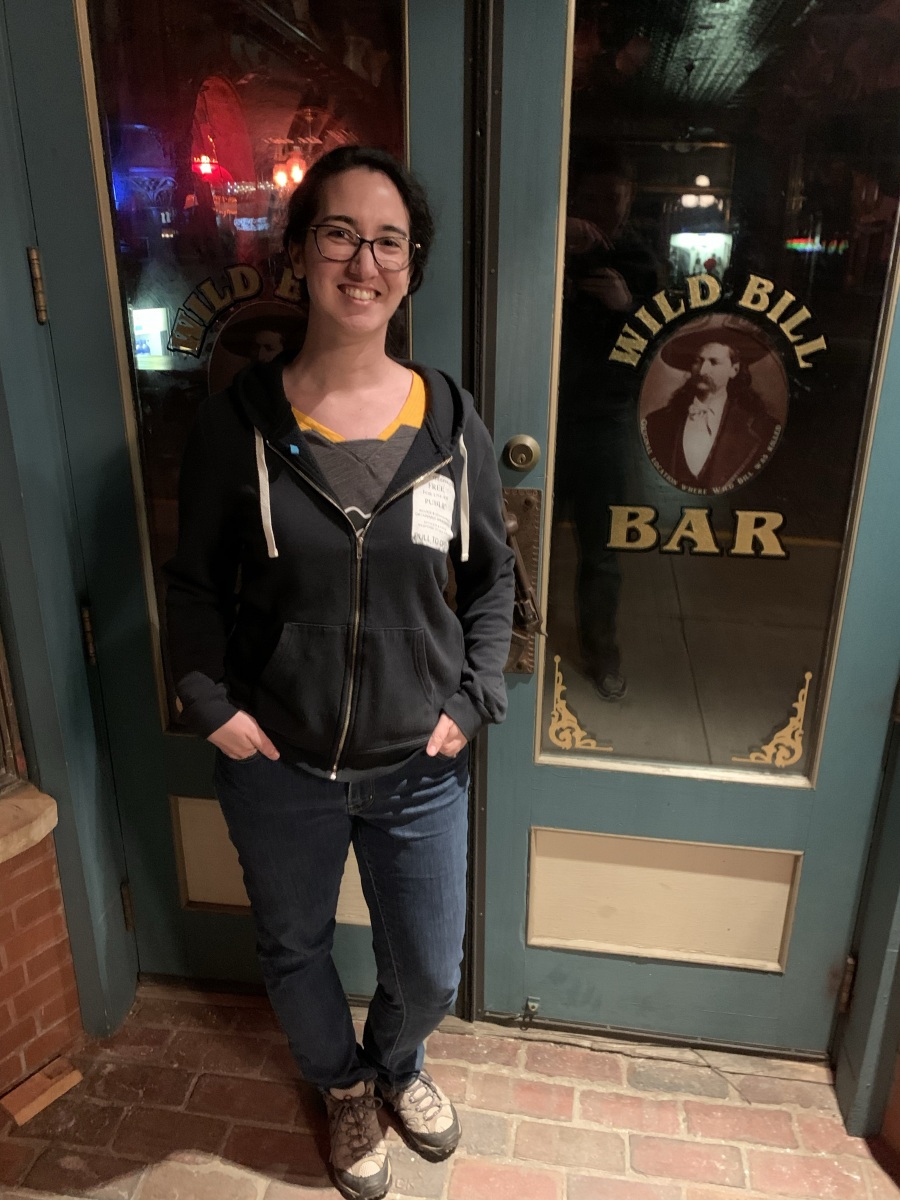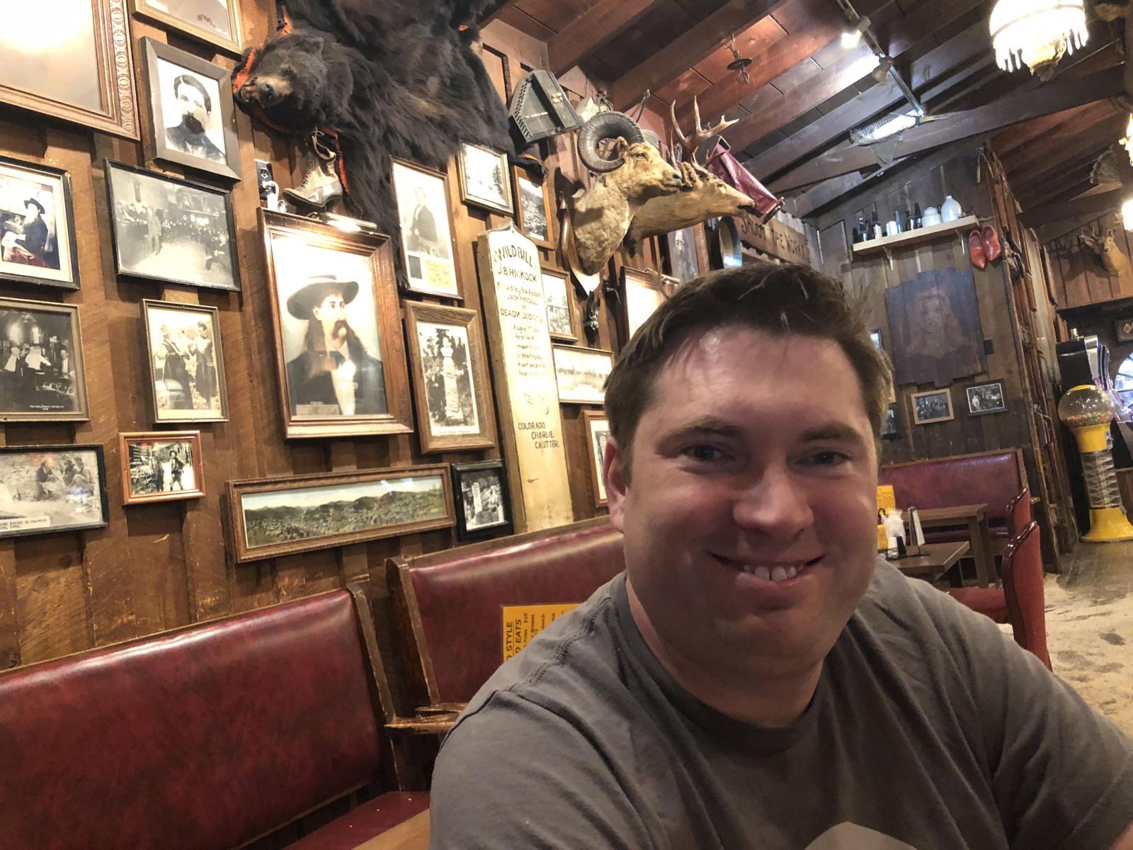 Looking super cheerful outside the bar where Wild Bill was shot in 1876