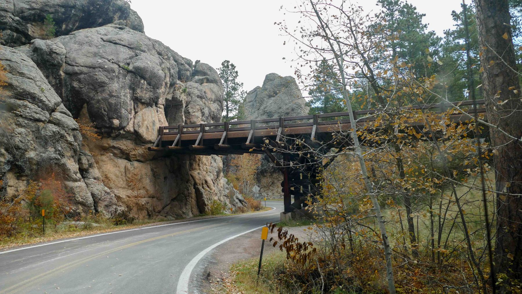 The Iron Mountain Road scenic drive stretches from Custer State Park to Mount Rushmore National Memorial. The drive takes you through prairies and the Black Hills, and is meant to be taken slowly. Instead of switchbacks to change elevation quickly, this drive features “Pigtail Bridges” where the road loops under itself. One-lane tunnels are carved out of house-sized boulders, and several lookouts are positioned to give you a view of Mount Rushmore on your approach.