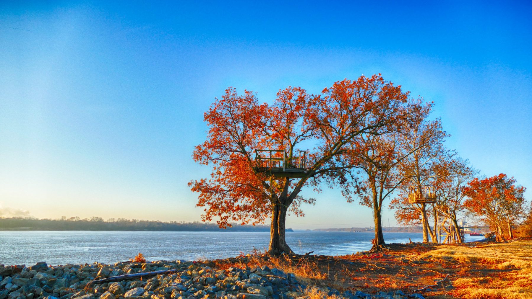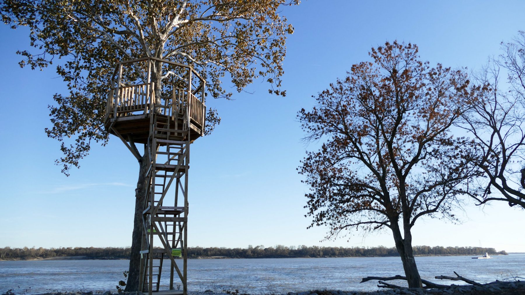 Trees lined the banks of the expansive park. There were no buildings around us. The sites gave some breathing room between neighboring RVs. Barges pushed up and down the river with a steady engine rumble in the distance. Mark could even get our WiFi up in the tree house across the path.