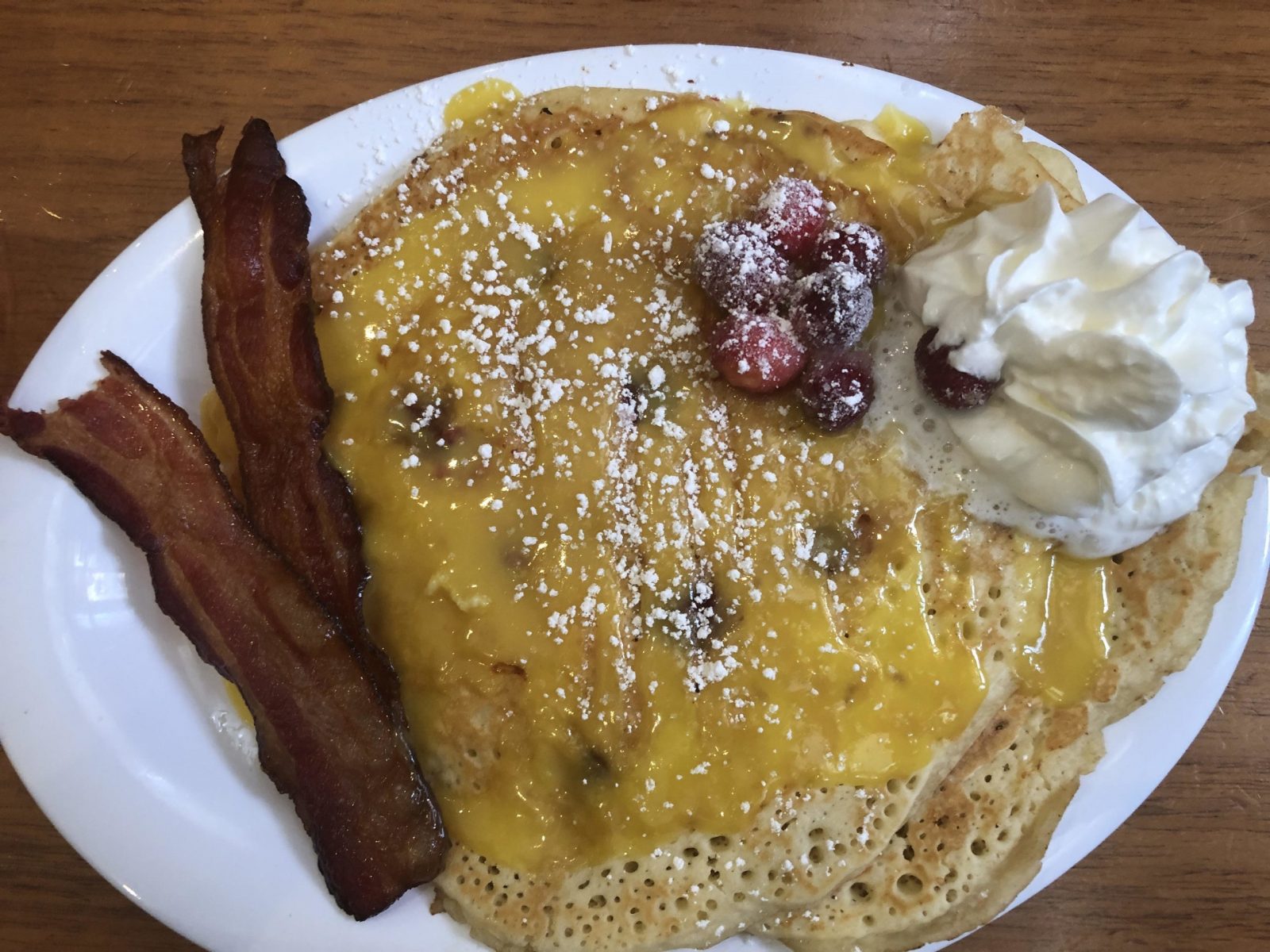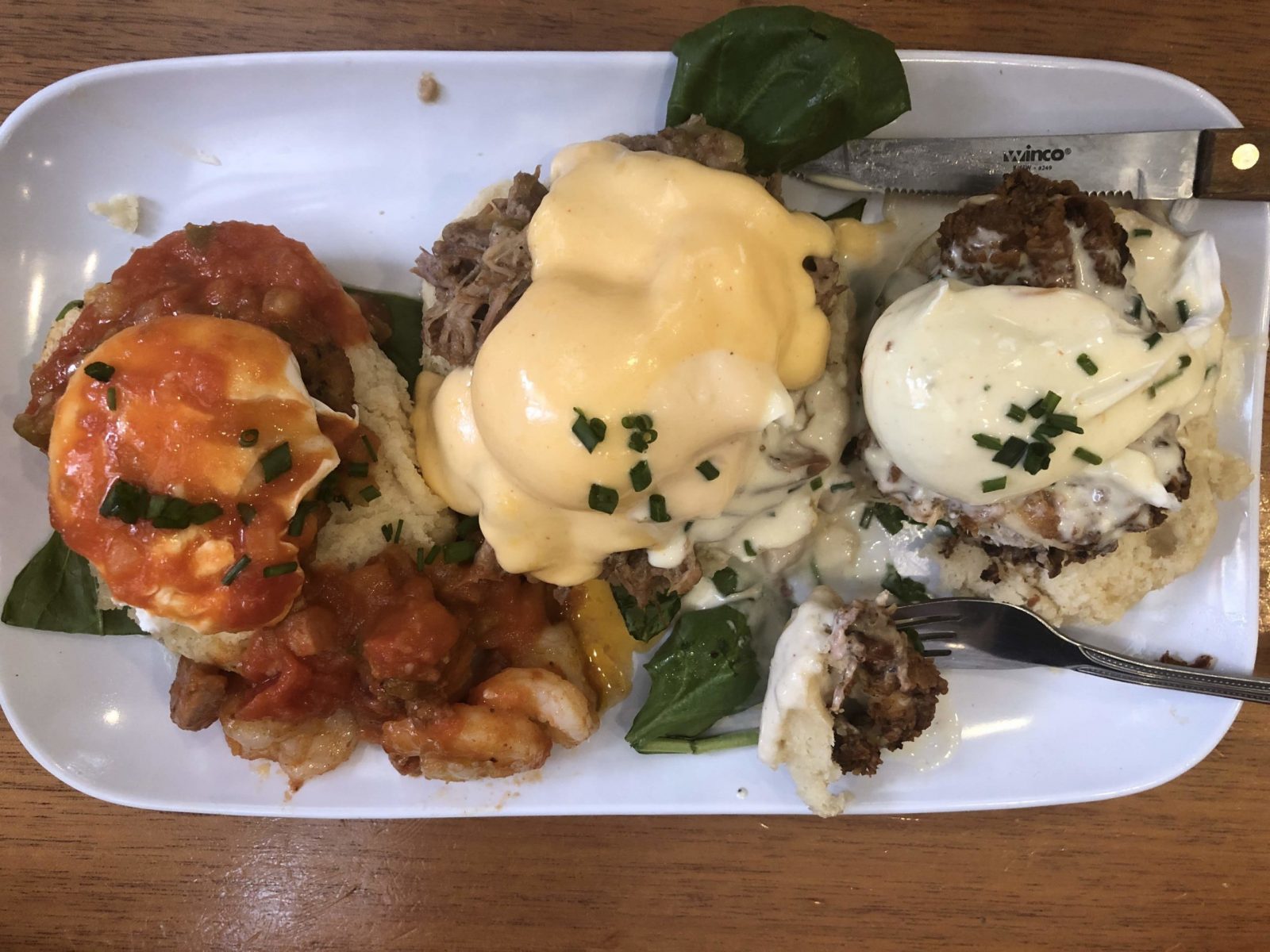 In our travels, it’s rare we’ve found an eatery we want to revisit; there’s just so much that’s new to see. But the Ruby Slipper Café really took the cake. The pancake! (Sorry, not sorry.) We went back for our last breakfast in town just in time for the new seasonal menu. I got one of the winter specials: cranberry pancakes with orange curd. Is it a sugary overload on your senses? Yes. Does the sweet orange pair perfectly with the tart cranberries? Of course. Do I regret anything? Psh never. And I got to nibble on Mark’s pick: the Trifecta. Why choose between three types of Eggs Benedict when you can get all three?