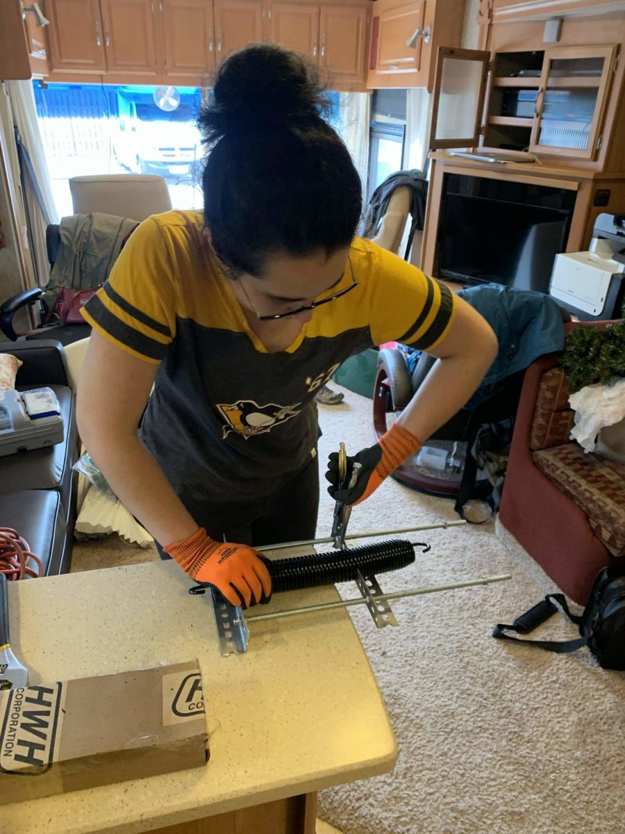 The big win of the week was replacing half of our rear jack springs. We’d lost one of the two springs that help the rear passenger-side jack back in Michigan in October, but while we were in New Orleans we discovered that both springs on the rear driver-side jack also busted. The springs help retract the jack and keep it stowed when we’re driving. A closer look showed the springs’ metal coil had rusted nearly halfway through; the stress of using them to try and free ourselves from our mud-stuck adventure probably didn’t help. With replacements shipped from Wisconsin, we got to work prepping the parts for install.