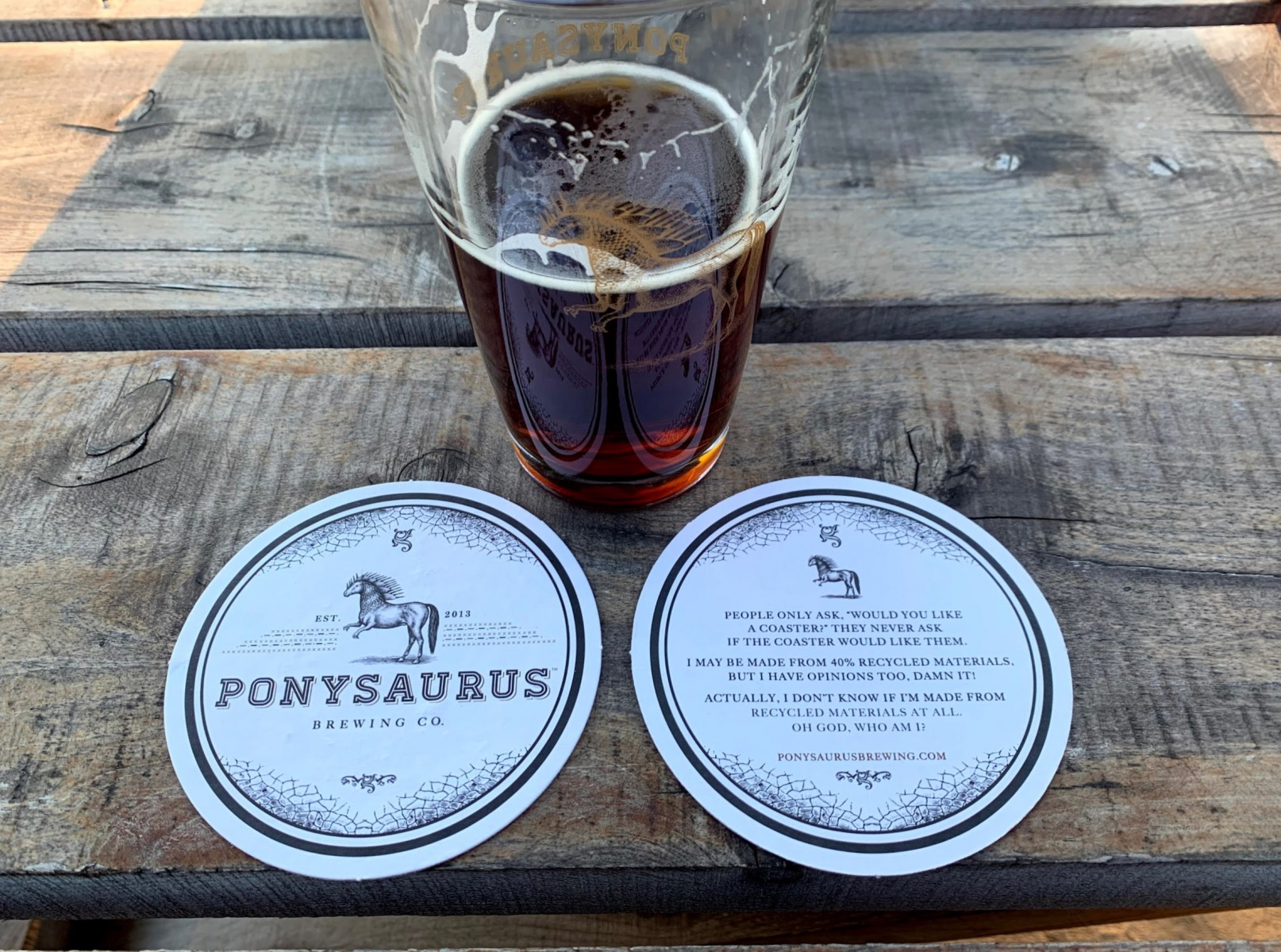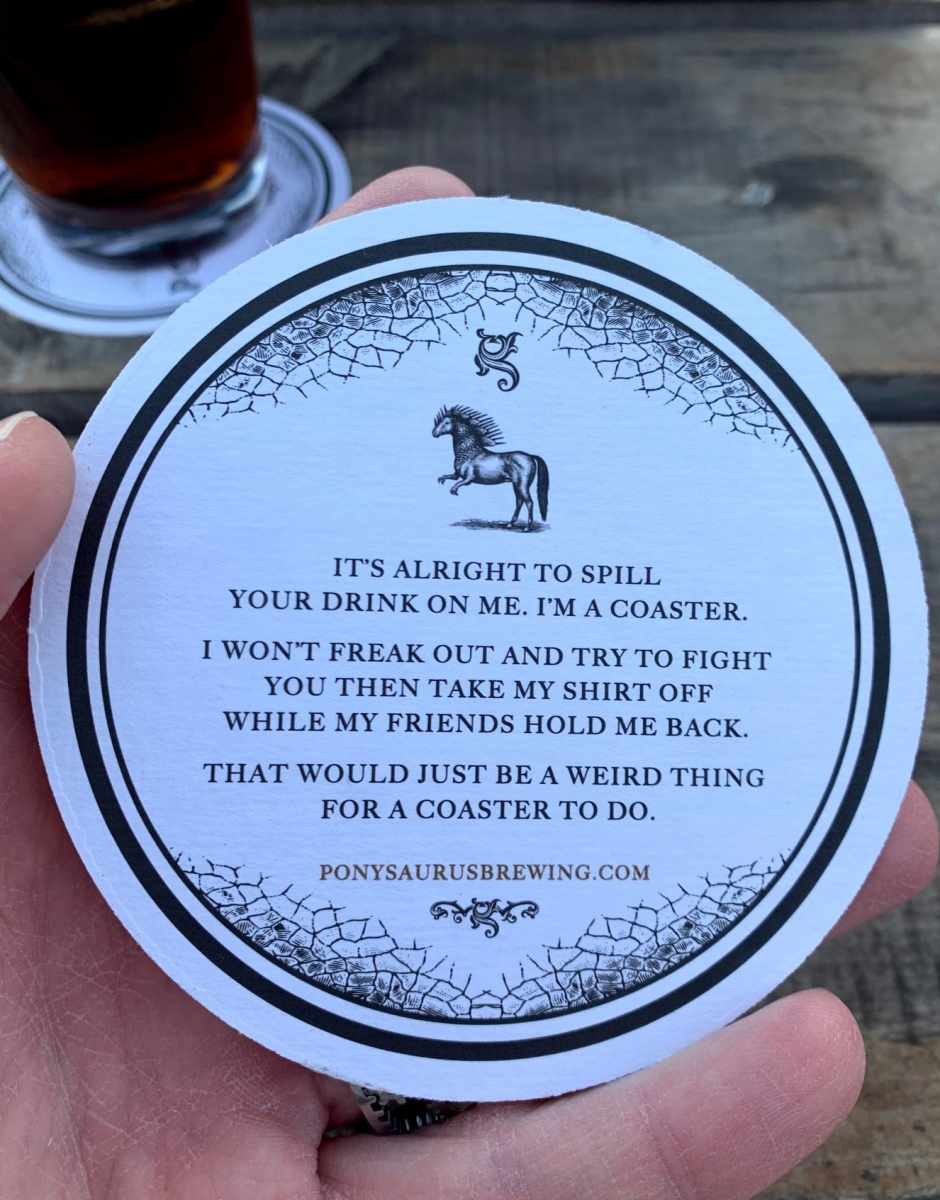 We closed out our Durham stay with a visit to the snarky/delicious Ponysaurus Brewing. Even on a brisk winter day, the beer garden was packed and the Baltic Bites food truck was turning out high volumes of Lithuanian munchies to pair with the punchy potables. Read the coasters.