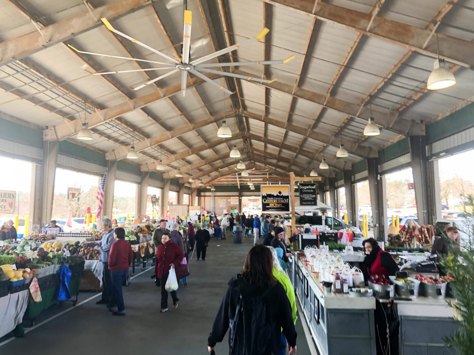 Outside of town is one of the locations of the North Carolina Farmers Market. I’ve never seen a market quite like this: instead of being a homegrown community setup on a local street, it’s a state-run operation housed in a fairgrounds-style campus of barns and stalls.